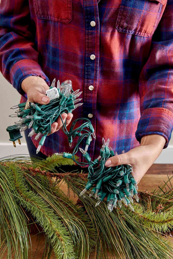 The first step is plugging in your lights. Start with the plugless end of the lights at the top of the tree. Then push the plug deeper into the branches. This will hide any dead zones. Then plug in another strand of lights. You can adjust the spacing as you go.